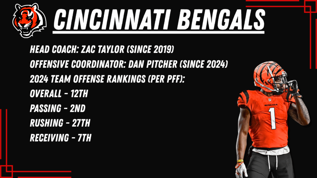 The Bengals didn’t do a whole lot of offensive work aside from signing Ja’Marr Chase and Tee Higgins to new contracts, so expect Burrow to be back in top form if he continues to stay healthy.