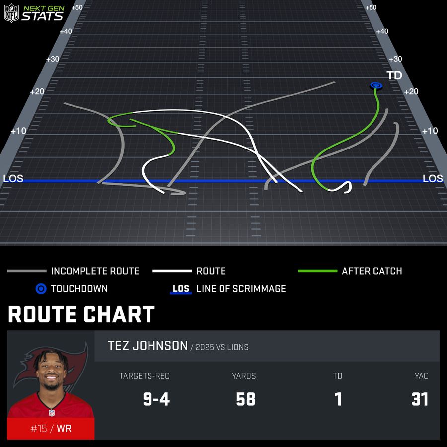 With Evans now on injured reserve, the Buccaneers will need Johnson to continue this trajectory. His usage has already jumped in the last two weeks, playing on more than two-thirds of the snaps and seeing nine targets against the Lions – the joint-second most on the team only behind Egbuka. Johnson is a sneaky high-upside flex through the bye weeks given this opportunity.
