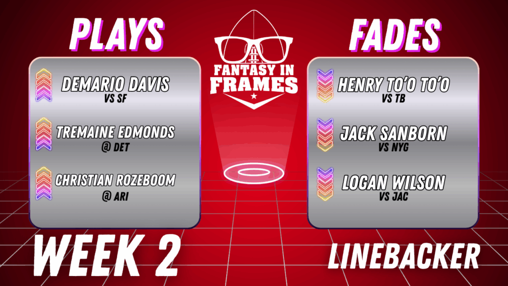- Wilson faces a bad matchup in Jacksonville, which allowed the 4th fewest LB points in week 1. Tank Bigsby is now in Philadelphia, which takes away their hammerhead option, potentially worsening the running game (and Wilson’s production). Wilson can still be played as an LB2; however, he is ranked as a top-10 play this week, which feels overzealous at this time.
