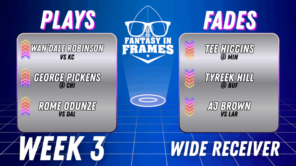 Catch me live every Wednesday at 10 PM EST on the 4th and Frames podcast. Connect with me on Twitter/X @KZ1180. Best of luck in Week 3, and let’s get those wins!